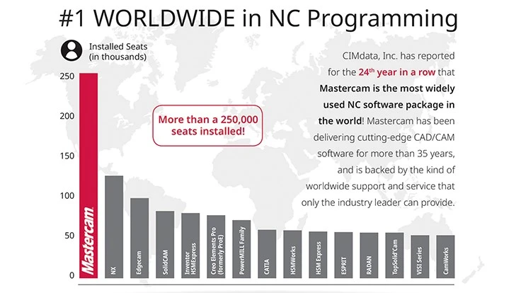 Tolland, Connecticut – According to CIMdata’s latest report, Mastercam is the number one CAM software used worldwide. CIMdata also ranked Mastercam’s global support network as the largest in the field of CAM.