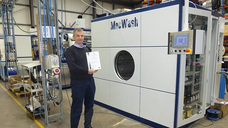 The certification covers MecWash for the design, manufacture, installation and servicing of aqueous parts cleaning and degreasing systems for metal and plastic engineering components.