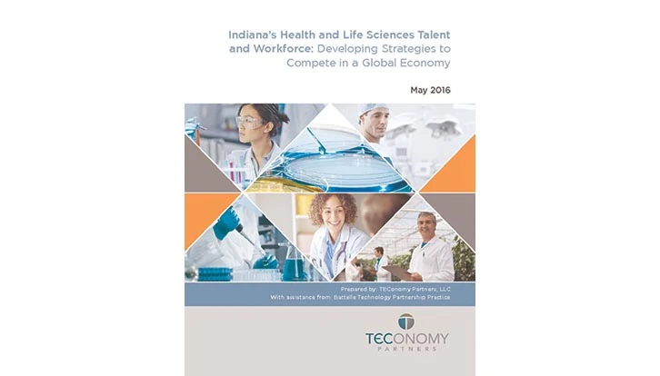 Indianapolis, Indiana – Indiana’s vibrant health and life sciences industry is generating significant high quality job opportunities and job growth across a range of skill levels, playing a critical role in Indiana’s ability to innovate and be globally competitive. According to a new report from TEConomy Partners, with support from Battelle Technology Partnership Practice, Indiana’s Heath and Life Sciences Talent and Workforce: Developing Strategies to Compete in a Global Economy, the health and life sciences industry*, has experienced job growth of over 22% since 2001, outpacing the rest of the U.S., and accounting for one of every ten private sector jobs in Indiana (a total of 265,000 jobs). The average wage for these jobs is $70,000 (the life sciences sector alone has average wages of almost $97,000).