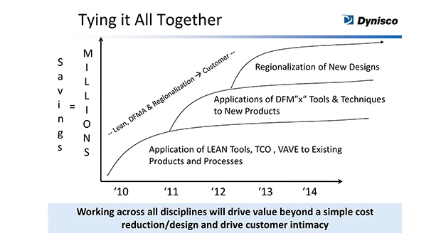 John Biagioni, president of Dynisco, led a three-part company presentation on TCO and “should costing” at the 30th annualBoothroyd Dewhurst International Forum on Design for Manufacture and Assembly (DFMA) in June. There, he and colleagues Matt Miles and Kevin Dailida unveiled their internal program for deciding where to manufacture globally and how to estimate and remove costs from product, corporate-wide organization and supply chain.