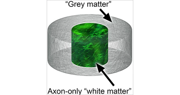 Currently, scientists grow neurons in petri dishes to study their behavior in a controllable environment. Yet neurons grown in two dimensions are unable to replicate the complex structural organization of brain tissue, which consists of segregated regions of grey and white matter. In the brain, grey matter is comprised primarily of neuron cell bodies, while white matter is made up of bundles of axons, which are the projections neurons send out to connect with one another. Because brain injuries and diseases often affect these areas differently, models are needed that exhibit grey and white matter compartmentalization.