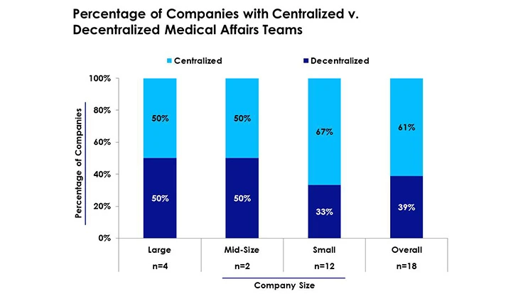 The new study, “Medical Affairs for Medical Device Manufacturers,” examines the benefits and shortcomings of centralized and decentralized structures. One key benefit of centralized medical affairs groups is that they easily facilitate rapid internal communication. Companies with small staffs will assign medical affairs responsibility at the global level. Since the team works under the same guidance, it is more likely than a decentralized team to develop and implement a unified functional strategy.