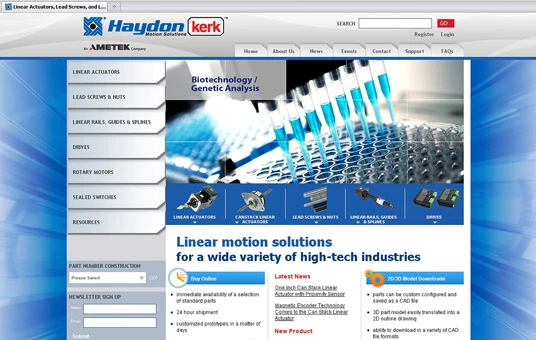 Haydon Kerk Motion Solutions Inc., a premier manufacturer of engineered linear motion products, introduces the launch of a new website look and navigation. The new home page has enhanced features such as tabbed navigation, access to 24 hour prototype ordering, configurable 2D drawings, and 3D CAD model downloads.