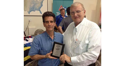 Receiving the award from Dean Kamen, founder of the FIRST organization, is William Clippard, III, President of Clippard Instrument Laboratory, Inc.