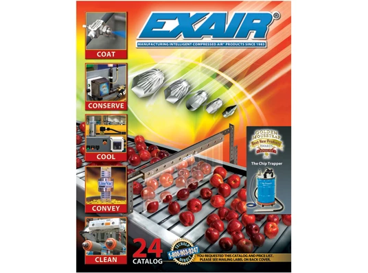 EXAIR's new Catalog 24 is a full color technical guide offering solutions to common industrial cooling, drying, conveying, blowoff, cleaning, coating, and static electricity problems. This expanded 164 page catalog features many new products that can help companies conserve compressed air and reduce dangerous noise levels. Featured products include new Atomizing Nozzles for cleaning, coating, and cooling plus an expanded selection of Chip Trapper, Chip Vac, Reversible Drum Vac, and Air Nozzle products. A detailed technical explanation, performance data, application photos, and dimensional drawings are provided for each product. A price list is also included.
