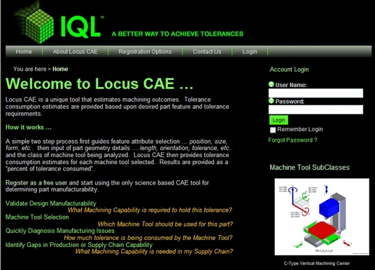 IQL (Independent Quality Labs, Inc.) introduces “LocusCAE.com” the first of a new generation of computer aided engineering (CAE) tools for predicting machining outcomes based on machine tool capability.