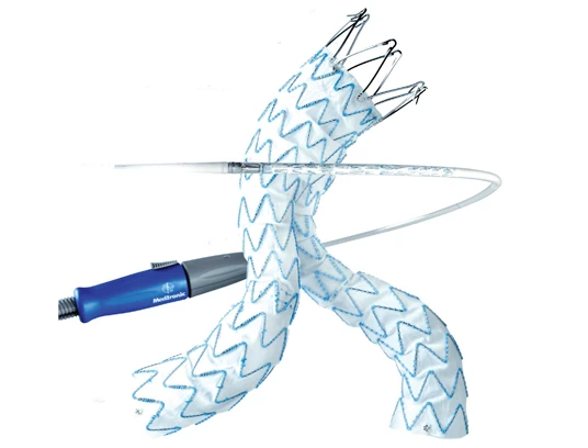 The Endurant stent graft is a flexible wire frame (stent) sewn onto a specially woven fabric tube (graft) that physicians use to create a new path for blood flow in the patient’s aorta, reducing pressure on the aneurysm and the risk of rupture. Delivered through catheters inserted into blood vessels in the groin, the new device is designed to conform to a broad range of aortic anatomies, enabling physicians to offer endovascular aortic repair (EVAR) to more AAA patients than ever before.