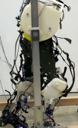 The neural architecture, musculoskeletal architecture and sensory feedback pathways in humans have been simplified and built into the robot, giving it a remarkably human-like walking gait that can be viewed in this video.