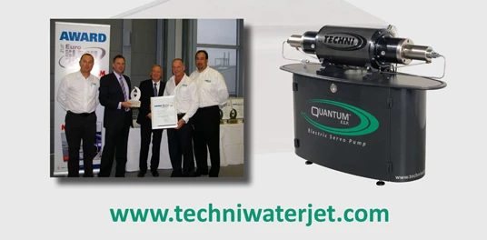 TECHNI Waterjet is pleased to announce the acceptance of an award at Euroblech 2010 Germany. This award represents innovation in the field of separation technology and was won with the newly developed Electric Servo Pump also known as the Quantum ESP. This recognition of achievement has paved the way for the successful launch into Europe for the company; the Quantum ESP™ is setting a new standard for the waterjet industry with focus on efficiency and accuracy.