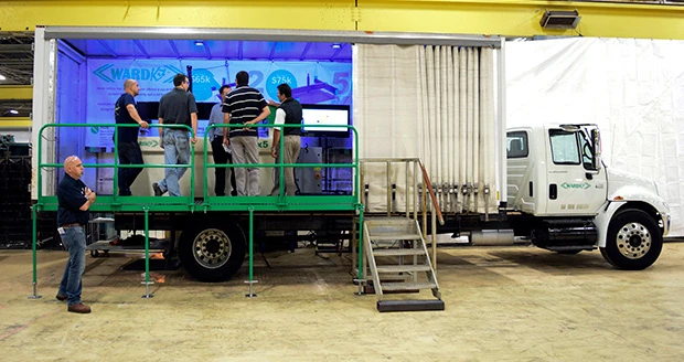 The 2015 open house featured the WARDKit On The Go, which is a 24-foot truck outfitted with a WARDKit 5x5 waterjet and equipped to tour across America. The design of the truck, which offers an experience similar to a trade show, has a curtain-style sides pulled back and modular platforms mounted to the side. Visitors were able to walk onto the truck and watch WARDKit demonstrations while TV screens, brochures, banners, and lighting complete the overall impression.