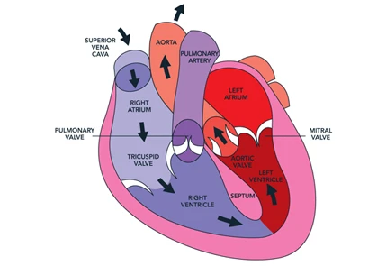 The MEGA Heart is the world's only portable, inflatable, walk-through heart exhibit. The MEGA Heart is approximately 21ft long by 15ft wide by 12ft high. Visitors enter the exhibit through the largest vein that feeds the heart, the superior vena cava, and exit through the largest artery that leaves the heart, the aorta.