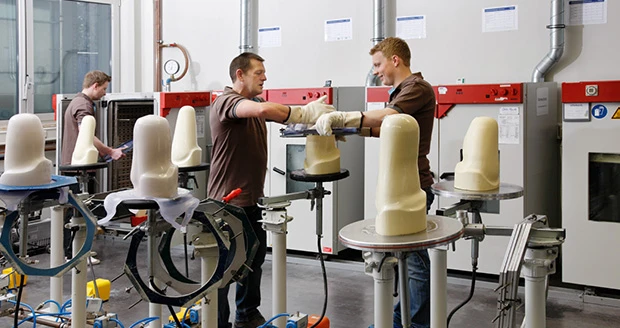(Below) High-precision craftsmanship is essential for rendering high-tech usable. The shaft of the prosthesis is matched meticulously to the user concerned Source: Otto Bock Health Care Deutschland GmbH, Duderstadt