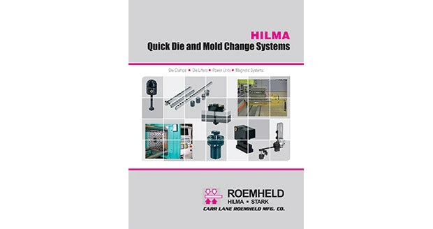 Fenton, Missouri – Hilma has introduced its new 256-page catalog, which offers state-of-the-art quick die and mold change systems. The catalog contains photos, engineer drawings, and specifications on Hilma’s quick-change clamps, die lifters, power units, magnetic systems and accessories. Hilma systems can be designed for your application, and allow you to cut costs and reduce setup time. Request a printed copy, or access the online catalog at www.clrh.com/hilma
