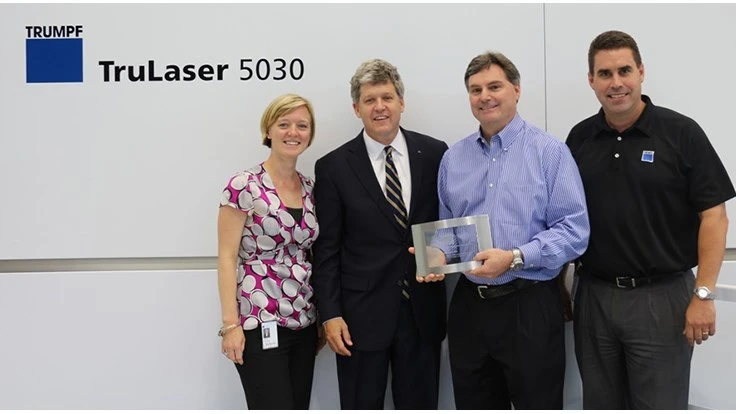 Indianapolis, Indiana — In recognition of their exceptional performance in selling Trumpf products during the past fiscal year, Braun Machinery, received the Outstanding Representative Performance Award. During the awards ceremony, at Trumpf’s North American headquarters in Connecticut, Burke Doar explaines, "Braun Machinery has represented Trumpf machine tools for the last five years, and we are please to present them, for the first time, with our most distinguished award.”