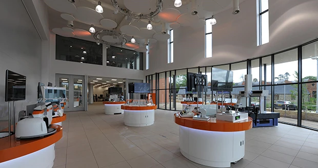 Inside the Renishaw Innovation Centre, all 40 meeting rooms are named after British innovators, primarily in the fields of science and engineering, but also innovators local to Renishaw’s headquarters site, such as Tyndale, Jenner and Pitman. The main conferencing facility is named after UK engineering icon Isambard Kingdom Brunel, who was responsible for many well-known structures in the West of England region including the Clifton Suspension Bridge and the ss Great Britain. Other rooms are dedicated to significant innovators including Whittle, Faraday, Lovelace, Haslett, Babbage, Turing, Caxton, and Stephenson. “This excellent new building is a place we hope will inspire people, and while it is very much focused on the future, we are also keen to honor those British innovators who have helped us as a society get to where we are today,” said McMurtry.