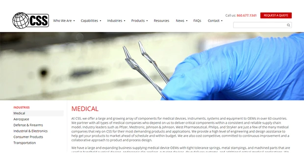 Farmington, Connecticut – CSS officials are pleased to announce the launch of the company’s redesigned U.S. website at www.ctspring.com. The site has been revamped and upgraded with a modern look and an enhanced user experience to help CSS better serve its customers. It is now easier than ever before for prospects and customers alike to locate information on CSS’ advanced capabilities and products for industries worldwide, from machined stampings to fineblanked components and assemblies.