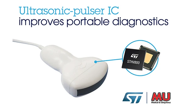 The industry’s most highly integrated ultrasonic pulser, ST’s STHV800 also offers low noise and tiny size to help produce accurate diagnostic images at a much lower cost and power consumption compared with stationary ultrasound equipment.
