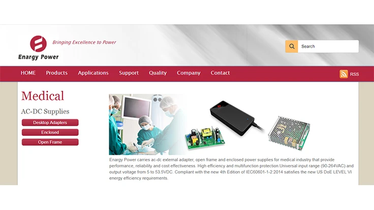 Enargy Power’s products, now available from WPG Americas, are focused on low- and medium-power desktop power adapters for medical and industrial applications. Enargy’s ultra-thin AC/DC desktop BladeAdapters with 60W and 90W power ratings are IEC60601-1 certified and meet 4th Edition EMC and DoE Level VI efficiency requirements. These industry-leading medical-grade AC/DC adapters are complimented by other desktop solutions with power ratings from 36W to 160W.