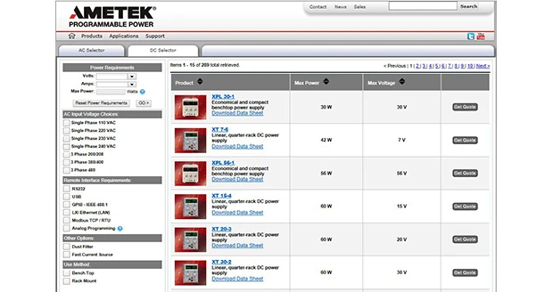 “Engineers are busy people who don’t have time to search through dozens of spec sheets to find the right power supply solution for the project at hand,” explained Bill Ruff, VP/Product Marketing Manager for AMETEK Programmable Power. “With just a few clicks and spec selections, our new online tool allows them to easily find an AC or DC power supply that meets their specific application requirements in just a few minutes.”