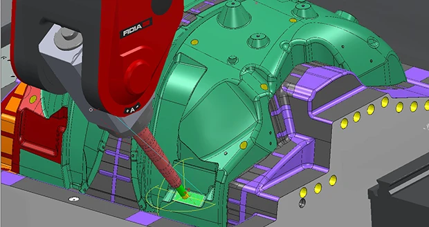 As well as highlighting potential collisions, warnings can also be flagged for near misses. The user can specify a clearance value and, when the machine tool comes within this value, it will turn yellow in color to highlight a near miss. The clearance distance is shown in the display.