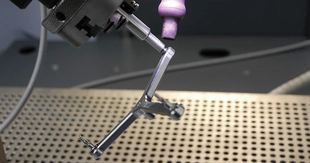For Brainlab’s Dash, DHF manufactures and assembles the iPod holder with all fixed or detachable 3D position markers and cutting devices. All pieces have to meet the quality standards for medical devices. The entire parts set is comprised of 14 weld joints of precision milled part, even of different stainless steel alloys. The mostly circular weld seams feature a width of only 100μm and must not show any pores or micro cracks.