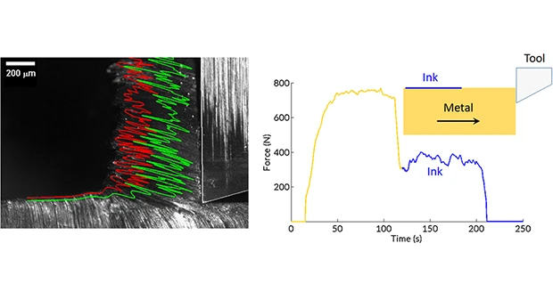 Findings showed the cutting force can be reduced 50% simply by painting metal with a standard marking ink. Because this painted layer was found to suppress sinuous flow, the implications are that not only can energy consumption be reduced by 50% but also that machining can be achieved faster and more efficiently and with improved surface quality, Chandrasekar said.