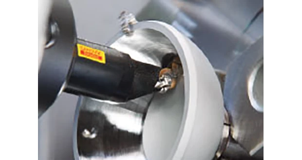 Circular ramping should be applied for the internal sphere, as this is a very effective method. Any tendency for short tool-life, inconsistency, or tool breakage should be addressed when running, since process security is a priority. Suitable round-insert technology should be applied to achieve high-quality surface finish. Also, the cycle time should be minimized to attain competitive productivity levels.