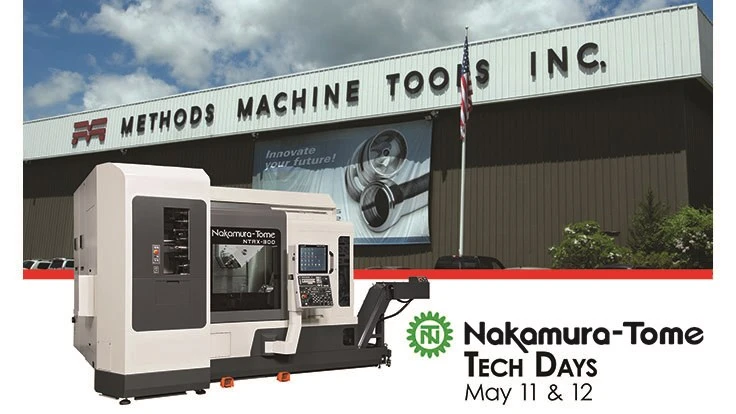 Sudbury, Massachusetts - Methods Machine Tools Inc., a leading supplier of innovative precision machine tools, 3D printing technology, automation, and accessories, will be hosting Nakamura-Tome Tech Days on May 11 & 12, 2016 from 10 a.m. - 5 p.m. each day at the company's corporate showroom and technology center, 71 Union Avenue, Sudbury, Massachusetts. The two-day event will feature the latest Nakamura-Tome multitasking turning centers and strategies for machining precision parts.