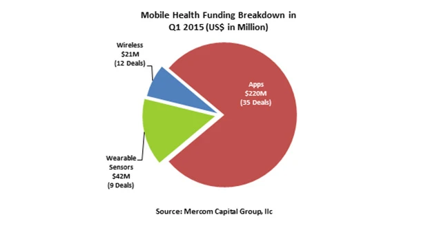 Mobile wireless technology companies with products like a wireless thermometer, a Bluetooth glucometer, wireless ECG and others recorded $21 million in 12 deals. Top deals included Atheer Labs, a provider of gesture-based 3D wearable smart glasses for use as a hands-free platform in operating rooms as well as to access medical records, which raised $8.8 million.