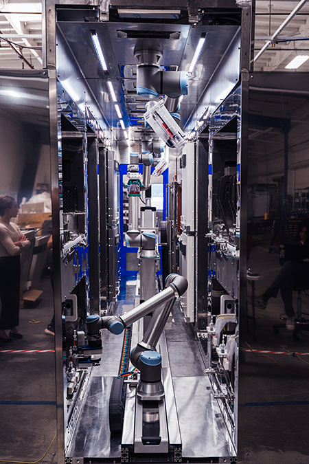 Multiply Labs chose Universal Robots for their robotics cluster after closely evaluating several different collaborative robots, says Head of Robotics at Multiply Labs, Nadia Kreciglowa: “UR was chosen due to their crucial six-axis capabilities, unrivaled force mode for delicate handling, seamless software integration, robust community support, and cleanroom compatibility.”