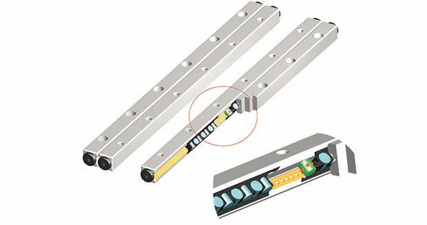 In addition load capacities are increased 1.4 to 2.3 times over the standard SV type. Roller-to-rail contact area is extended 42% to 58% while the number of rollers is increased 20% to 55%. Studroller, lowers component costs and allows more compact designs.