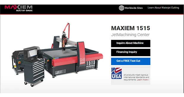 The MAXIEM 1515 is a robust and highly versatile abrasive waterjet machine designed and built in the United States and ideal for trade schools, fabrication shops, metal service centers and job shops. It features OMAX’s industry leading Intelli-TRAX linear drive system, an innovative Z-axis core with optional multi-axis cutting heads and the lowest ceiling height in the industry.