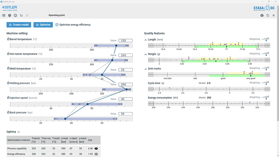 In this case, to achieve the desired surface quality, an additively manufactured device was integrated into the fully automated process, which was also validated via DoE. Because of the data analysis with STASA QC Optimize and after a total of three test series (DoEs), GEMÜ was able to implement a sustainable and efficient injection molding production process with a high degree of process control. This success also allowed Fritzsche and Pllana to achieve greater acceptance of the use of STASA QC within the GEMÜ Group: the software from Kistler is now used as standard in the second phase of mold validation for special product groups (meaning after the mold is inspected and approved in phase 1).