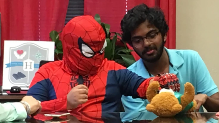 SivaTeja Pati, a biology major at Texas Tech University, presented Toby with a custom-made, Spider-Man-patterned prosthetic hand he designed and 3D printed for the boy, using the Makerspace in the University Library.
