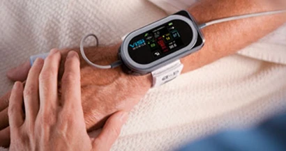 The ViSi Mobile System is the first wrist-worn monitor to measure all core patient vital signs: cNIBP, heart rate, or pulse rate, electrocardiogram (ECG), blood oxygenation level, respiration rate and skin temperature, with the accuracy of systems used in hospital intensive care units. Wireless technology transmits vital sign data, enabling clinicians to monitor measurements on remote viewing or notification devices. The system incorporates safety features, such as an advanced alarm management system that notifies clinicians of unfavorable changes in a patient’s condition, enabling early intervention if needed.