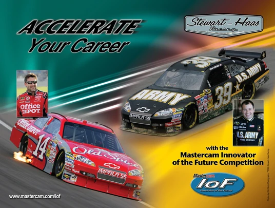 The student who creates the winning entry will receive a $1,000 scholarship to the school of their choice. In addition, the winner and their Mastercam instructor will receive an expense-paid trip to tour the Stewart-Haas Racing headquarters and machine shop in Kannapolis, NC. A Mastercam IOF recognition plaque will go to both the winner and their school, and the winner’s instructor will receive a limited edition Mastercam IOF polo shirt. Everyone who enters the competition receives an exclusive Mastercam IOF shirt.