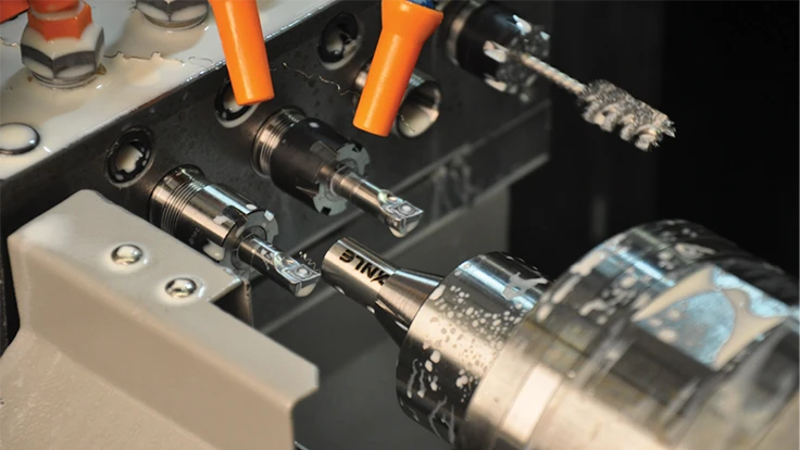 That machine is the Tsugami S205 LaserSwiss, which combines 5-axis Swiss machining with a fully integrated laser. This gave NLE the ability to apply up to 32 cutting tools in a variety of front, back, and side orientations with laser cutting at up to 20ips (500mm/sec).