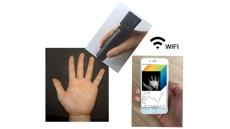 "The easiest way to use a spectrometer is to wave it over the part of the body or object being examined," says first author Fuhong Cai, Hainan University, China. "However, many home-made portable spectrometers use a smartphone camera to acquire data and a phone cradle that contains other necessary optics. The cradle can be hard to align correctly and makes it awkward to wave the smartphone over the body."