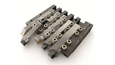 The AFC system is comprised of a 2-piece, universal tool holder mounted inside the machine. A separate quick-change toolholder slides into the end of the stationary block and locks in to by giving two screws a quarter-turn each.