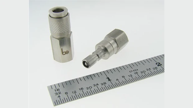 The ultra-miniature Beswick M3 threaded dry-break quick disconnect is precisely manufactured from corrosion resistant stainless steel and is rated to 500psig when connected. Buna-N is the standard seal material. Viton and EPDM are optional and can handle many types of fluids. Other elastomers are available upon request. Take advantage of our proprietary technology and experience to improve the performance of your products.