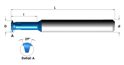 The high production, superior finish, and long life advantages of Carmex's new BLU sub-micron grade carbide with advanced PVD triple coating are now available for small-sized Acme threads in the 5 to 16 range. The latest addition to the Carmex mini mill-thread line covers 5, 6, 8, 10, 12, 14, and 16 Acme with shank sizes ranging from 1/4" to 5/8" and diameters from .170" to .625".