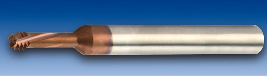 Constructed of solid carbide coated with TiAlN, the tools rotation creates the thread hole, the thread, and the chamfer in a single operation. The expanded product line offers thread mills with smaller diameter for a thread depth of up to 2.5 x Diameter.