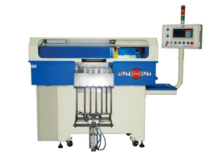 The "Auto-Cut", a CNC Carbide Rod Cut-Off Machine, can double the production rate for cutting carbide and hardened steel rod when compared with manual cut-off machines. It has easy to use CNC controls with a touch screen operator interface. Parameters can be quickly set for rod diameter and length. An optical edge detection system monitors and compensates for wheel wear. The machine automatically loads and cuts rods into precision lengths from a large capacity magazine.