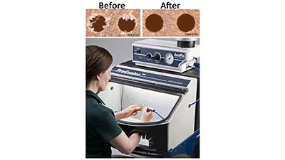 Sample parts for testing are welcome at Comco’s Applications Lab in Burbank, where engineers evaluate parts tested with different abrasive media and conditions to determine the most efficient approach for each application.