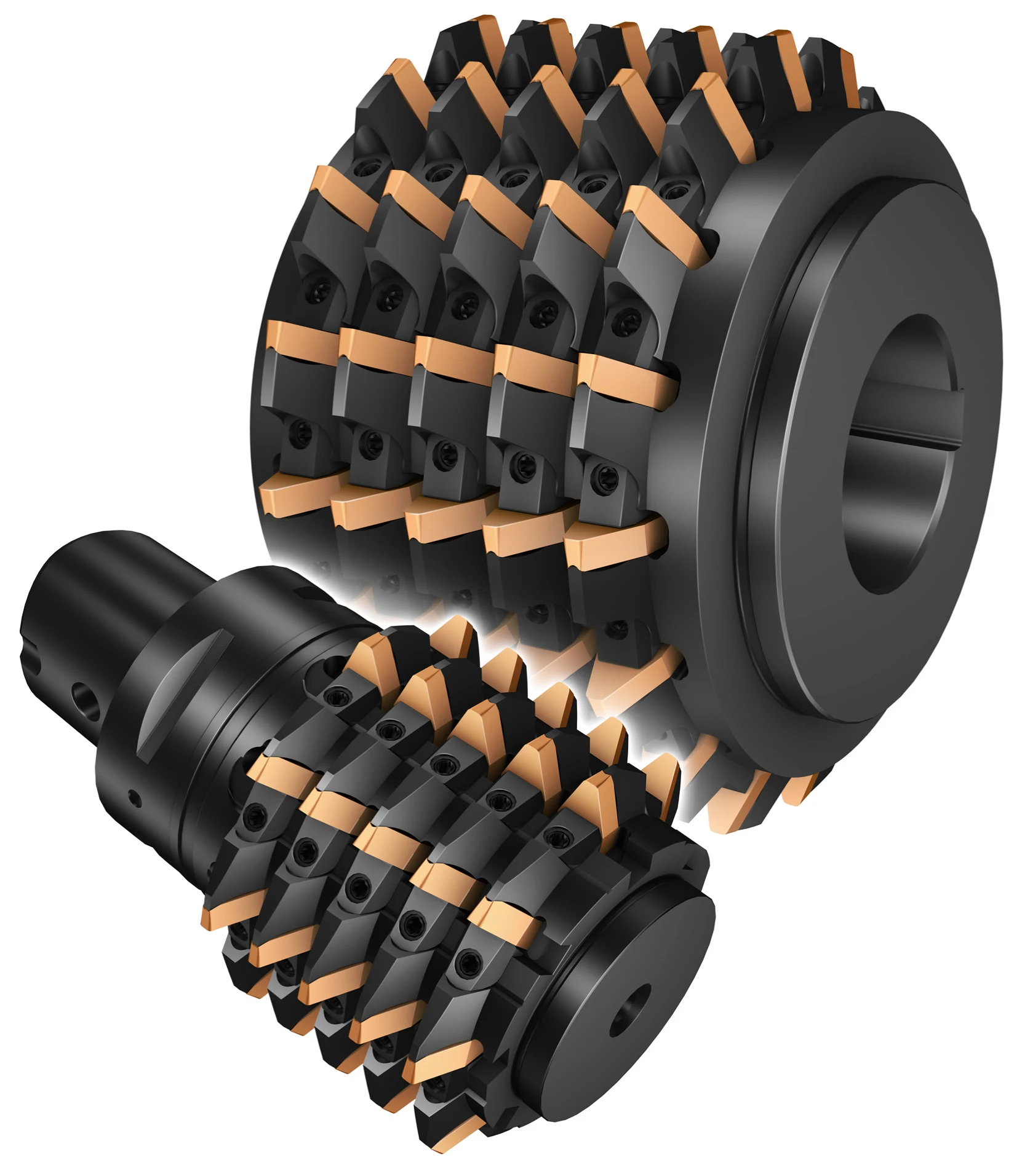 Hobs can be supplied with standard carbide inserts for generating gear profiles in accordance with DIN3972-2, although Custom Made options are also available for specific profiles with, for example, addendum modification, protuberance, tip chamfer and tip relief. Insert grade GC1030 with multi-layer coating is offered for high levels of wear resistance and edge line toughness in ISO P (steel) gear milling operations. Numerous global installations have proven that this concept is very attractive to boost productivity and cut cost in gear and spline manufacturing.