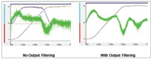 Typically, the Output Filter can be set to a value close to the system’s natural frequency. For example, if a system naturally oscillates at 10Hz, a good starting HZ value for the Output Filter is 10 or higher. This filters out noise that occurs faster than the system can respond, while allowing the controls parameters to apply maximum effect.
