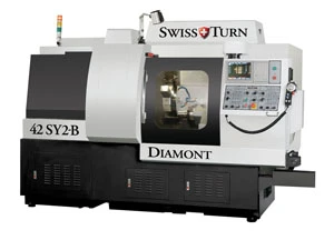 The new 42mm sliding headstock CNC SwissTurn Diamont 42 SY2B is the flagship model offered by Eurotech. It comes built with the superior engineered Meehanite castings, the very high precision THK/NSK bearings and linear ways and it is brought to us with the recognized leader of multi-axis quality control systems, i.e., Mistubishi.
