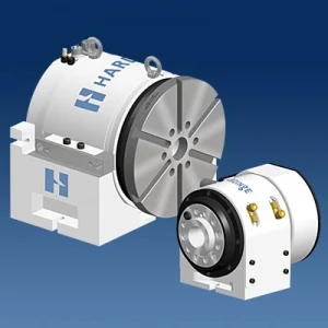 Hardinge DIRECT-DRIVE Super-Precision® Rotary Systems offer high-speed positioning and rapid bidirectional response. Features and Advantages of Direct-Drive rotary systems: • Direct-drive, rare-earth permanent magnet torque motor - No mechanical gearing, fewer parts to wear - Zero backlash, high servo stiffness - Rapid bidirectional response - Wraparound motor for smaller footprint - Super-Precision® positioning accuracy and repeatability • Rugged cross roller bearing for high-moment loads with super rigidity • Integrated axis capability for operation at maximum machine capability – full use of high-speed machining and machine's "Look-ahead" programming A2-4 5C high-speed model features 3600-degrees per second indexing speed. A2-5 16C high-torque model also available. Collet-ready spindles accept collets, expanding collets, step chucks, power chucks and slotted face plates.
