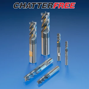 Two early applications underscore the added performance of the variable-helix/variable-flute endmill vs. standard variable-flute tool.  In rough shoulder milling of an austenitic stainless steel workpiece, the material removal rate improved to 20.05 cm3/min., from 9.17 with the tool change, and tool life improved to 45 pieces vs. 30, before flank wear necessitated replacement. The main improvement with the EC-H cutter stemmed from doubling the depth of cut, which would have snapped off the competing tool.  Also, in the case of a rough slotting operation with X6CrNiMoTi17-12-2, the EC-H CHATTERFREE endmill lasted through 60 pieces under identical conditions that had snapped off the competing endmill at 45 pieces.
