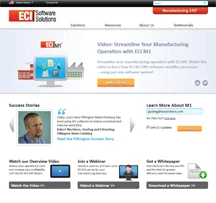 The site provides a self-service atmosphere for those who are interested in learning more about the company’s manufacturing solutions. Users can sign up for demos and educational webinars through the site, download white papers on the manufacturing industry, contact a sales representative, find upcoming tradeshows and more.